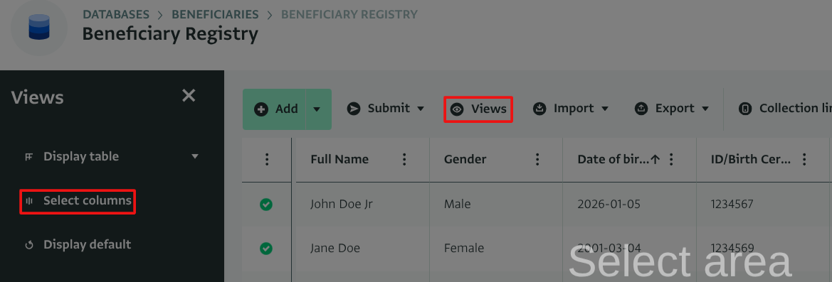 By default, all Fields are shown in the Table View. You can hide certain Fields from the Table View by selecting “Hide in table” in the Form Designer.