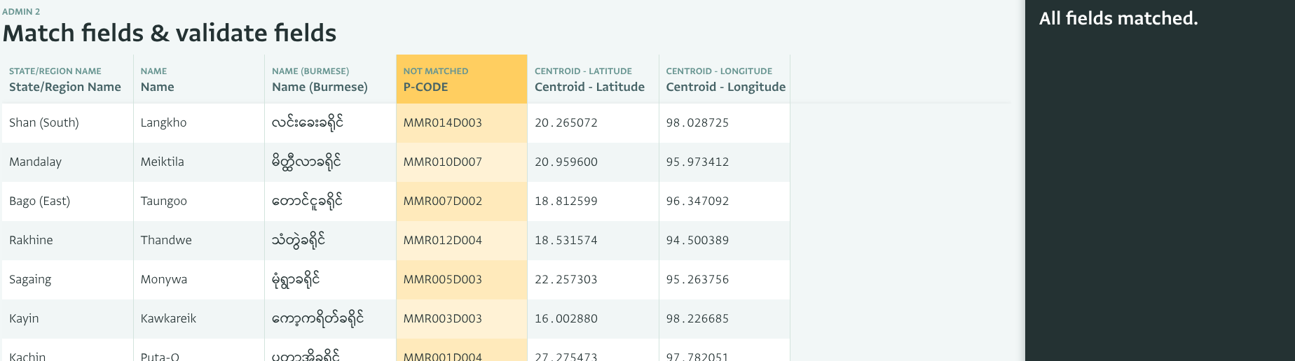 - To go back to the matching of columns and validation of Fields part of the process, click “Back.”