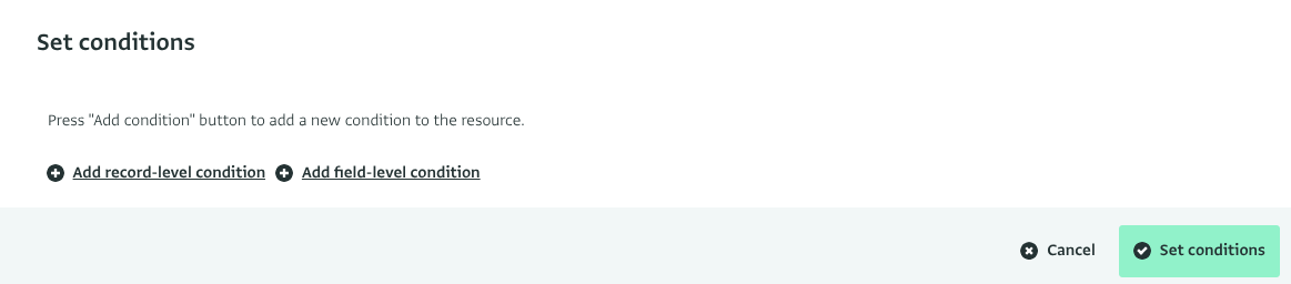 Haga clic en Establecer condiciones, luego guarde sus cambios en el panel de permisos.
