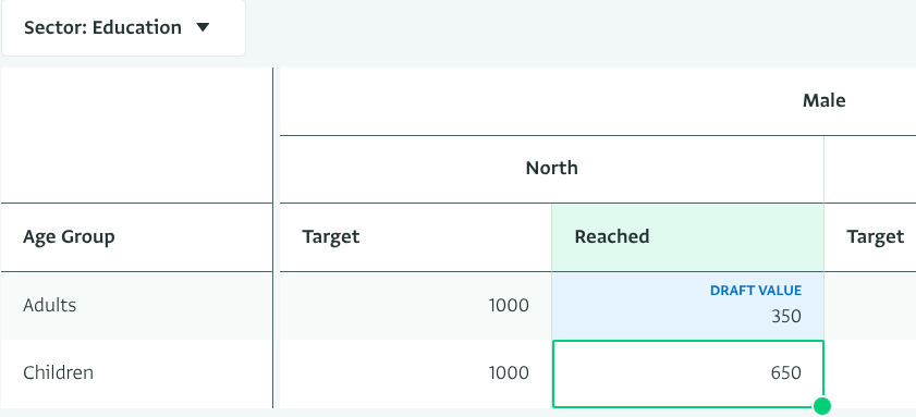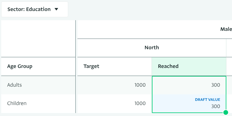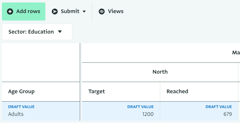 Overall, the Matrix View bridges the gap between robust indicator data modeling and intuitive data entry, making it particularly well suited for complex reporting requirements in monitoring, evaluation, and results-based management contexts.