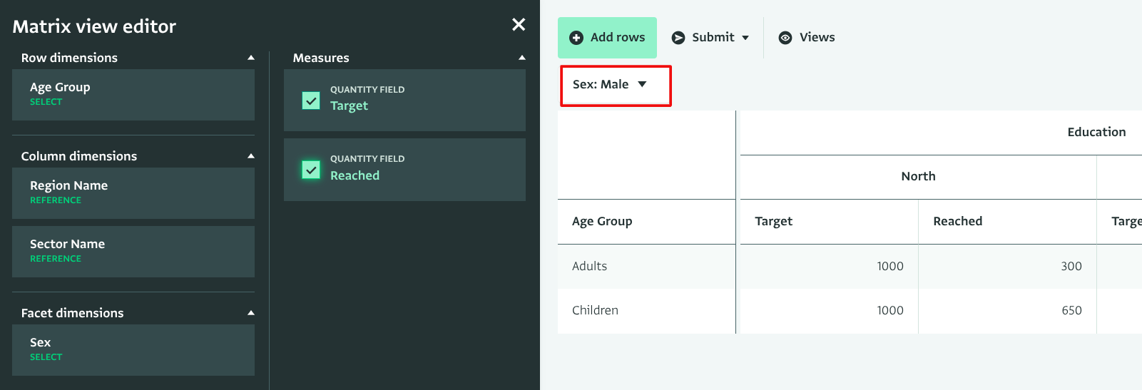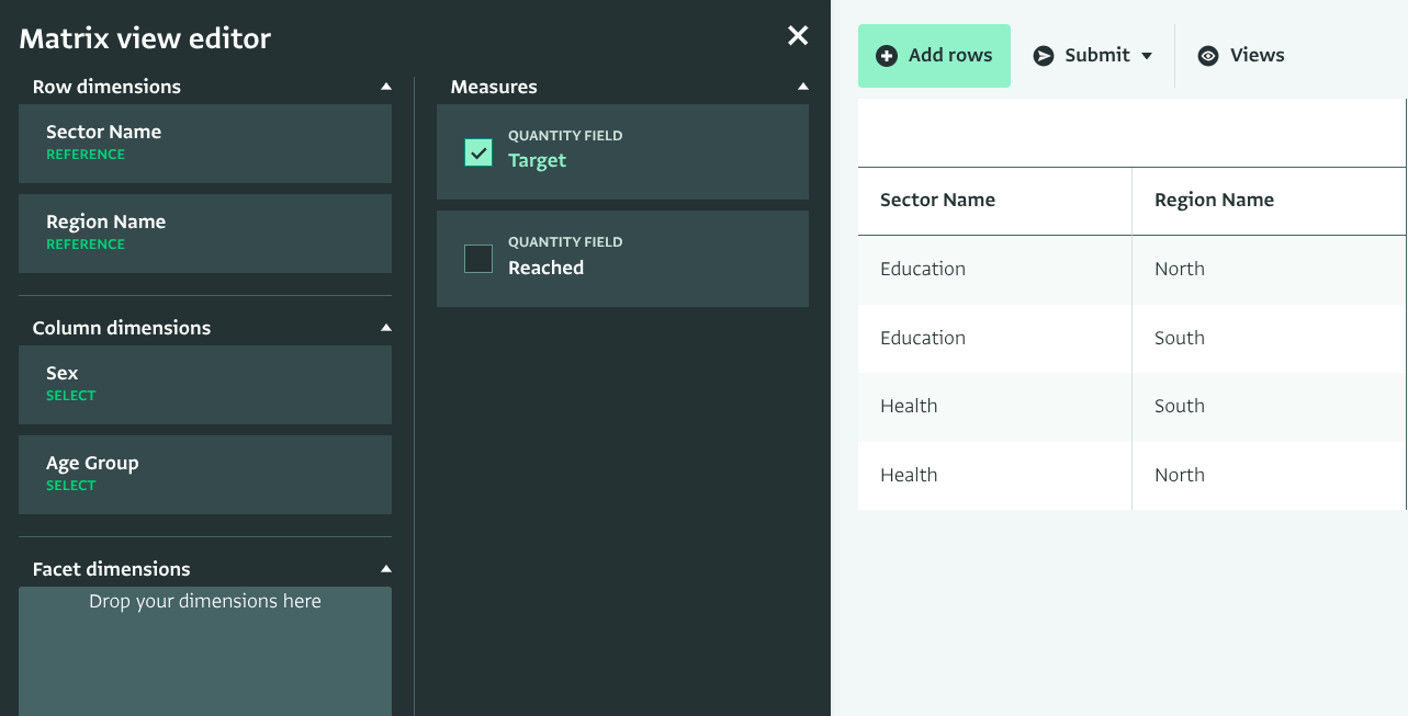 The Matrix View is a way to enter and review disaggregated data in ActivityInfo. It allows form designers and data entry users to work with data in a pivot-table style interface while keeping the underlying data in the long, analysis-friendly format.