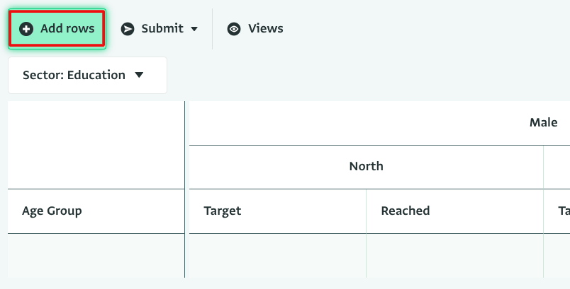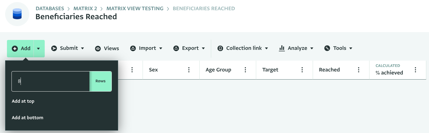 - Add rows depending on the number of records you want to add to the matrix by clicking on the Add rows button. Each click adds a single row.