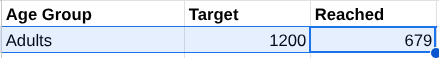 | % Achieved | Calculated (Reached/Target) | N/A |