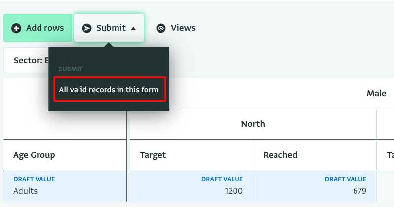 - Once you have pasted the records, proceed to click on Submit and select All valid records in this form to commit.
