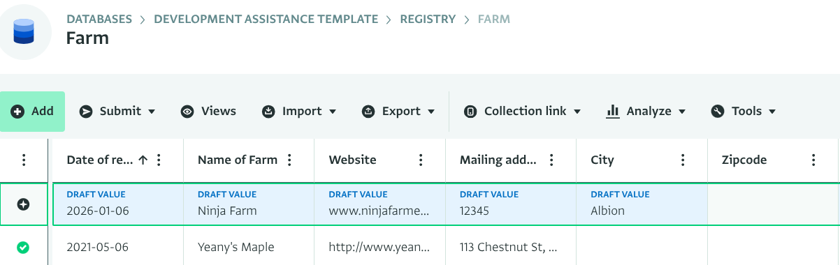 - Click on Subrecords or referenced records to navigate to them. Records added to Subforms are added as links.