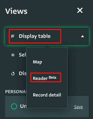 Reader view is a custom Record viewing option, that you can activate by following these steps: