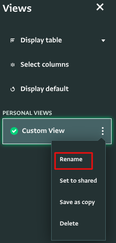 - You can rename your personal local view by clicking “Rename”.