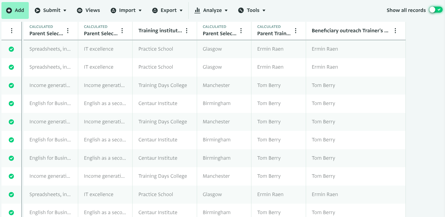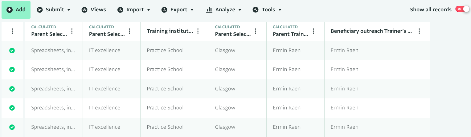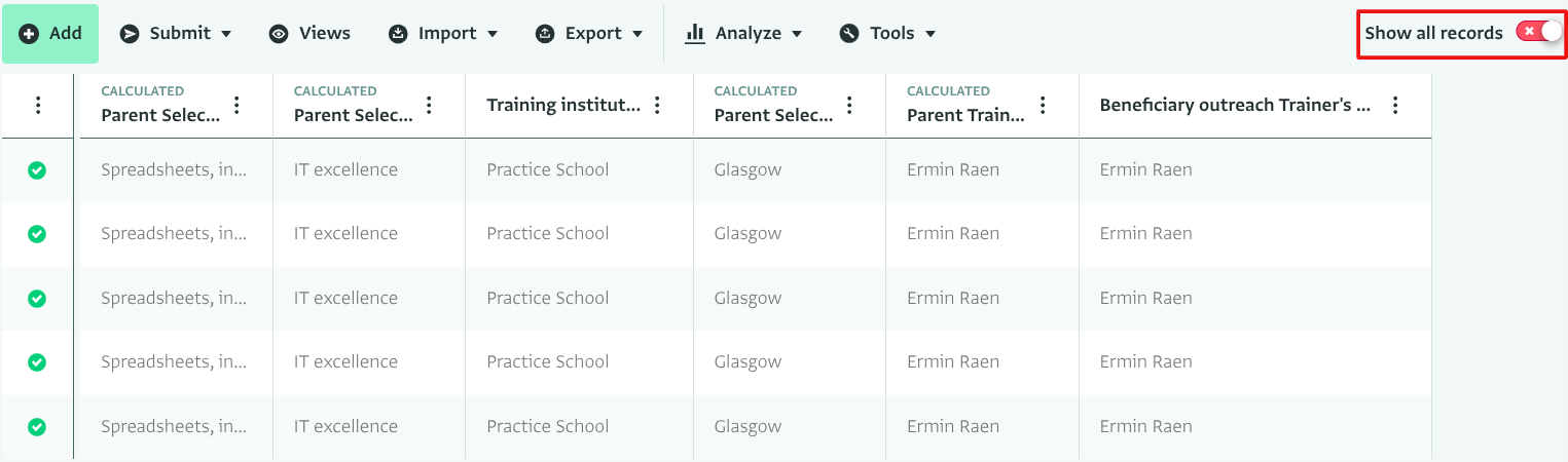 - Click on the 'Show all records' slider to switch from 'X' to '✔'.